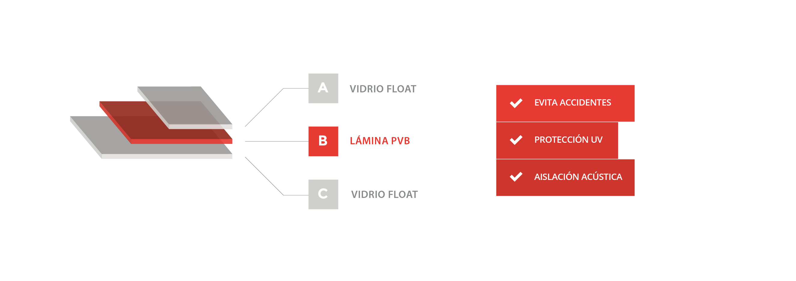- Ante su fractura, los trozos de vidrio rotos quedan adheridos a la lámina de PVB, manteniendo la visibilidad e integridad del paño.